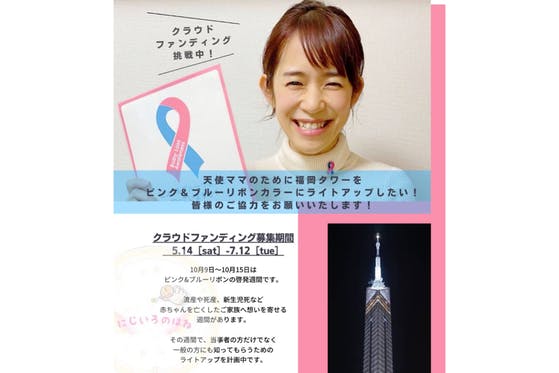 天使ママ支援のボランティア団体にじいろのはねです。 10月9日〜15日ピンク&ブルーリボンの啓発週間に福岡タワーをピンクとブルーにライトアップしたくて、その資...