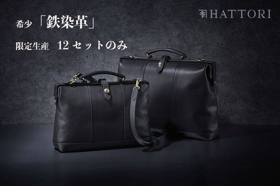 タンニンと鉄が反応して黒くなることを利用して、革を染める製法「鉄染め」で、深い黒の色合いを出した鉄染め革のダレスバッグ。まだ大量生産や安定供給が難しいため、今回...