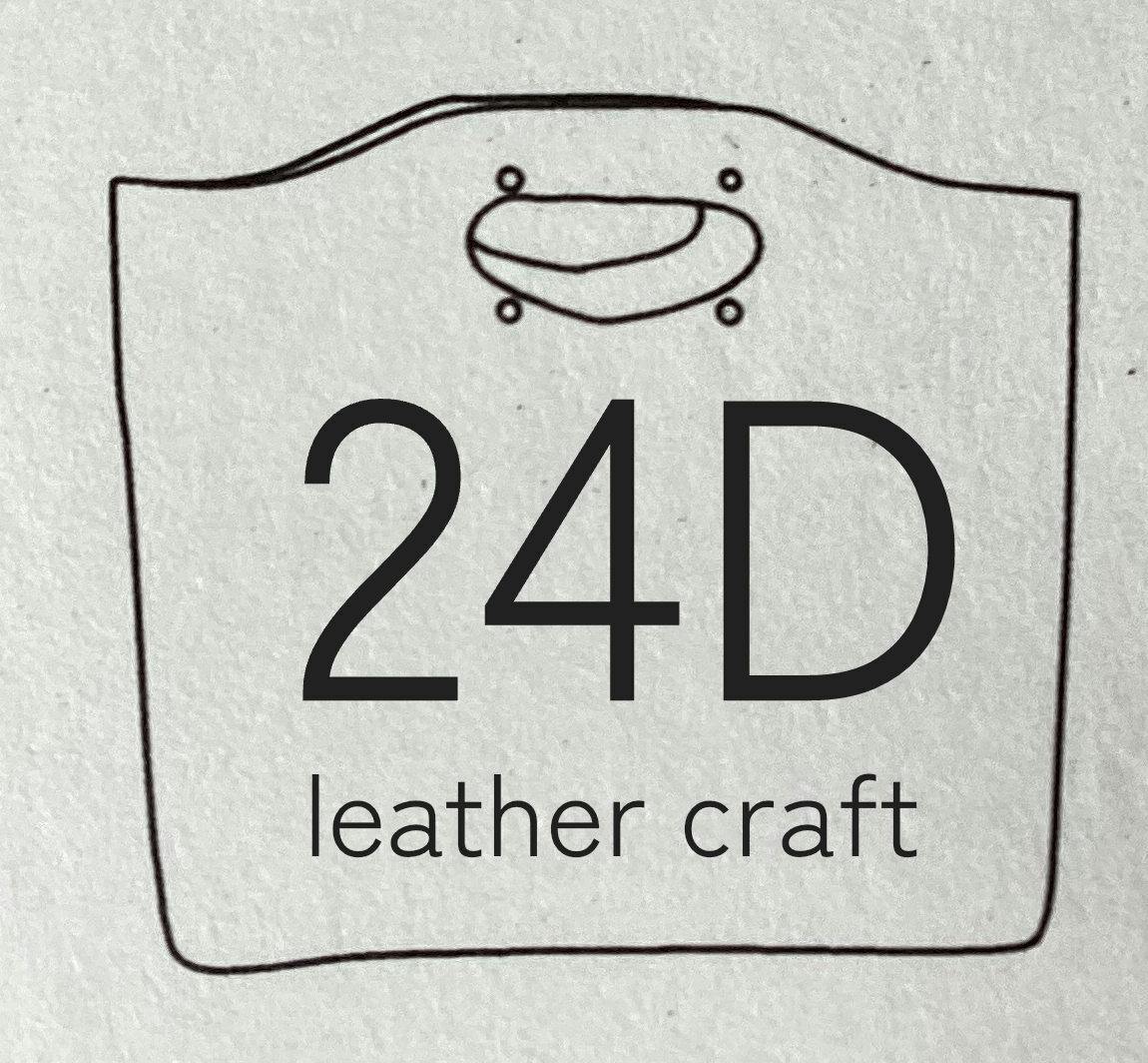 ”24D leather craft“ ハンドメイドのレザーブランド。 2007年より、作家活動を開始。これまで、延べ10,000点を超える作品を製作しました。 世界各地の民族衣装を自ら買い付け、世界の民族衣装と本革を合わせた作品や廃材利用にと床革作品など多数製作しております。 活動内容はメインとなる財布やかばん等の革製品はもちろんのこと、工房をセルフビルド、自宅をセルフリフォーム、キャンピングカーの改造、オリジナルTシャツ、洋服、音楽、絵、無農薬野菜 などなど活動は多岐にわたります。 2014年に結婚後は革ブランド「24D」を夫婦で発足。他には無い、丸み帯びたデザインで男女問わず使える革小物を作っています。 また、やさしい革を使い、小さなハギレも捨てない、環境に配慮したモノづくりを心がけています。 全国各地のクラフトフェア、音楽フェスに出店してます。 2019年5月1日。 新しい時代「令和」に合わせて、新しい試み一風変わったレコード屋さんをOPEN。 今後は常識に縛られない、『生活そのもの』を手作りしたいと思います。 趣味は音楽とパラグライダーと猫。