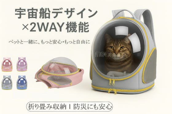 猫ちゃんや小型犬と一緒に安心してお出かけできる「宇宙船風バックパック型キャリーバッグ」。透明ドームから顔を出すペットの姿はSNS映え間違いなし!さらに 折り畳み...