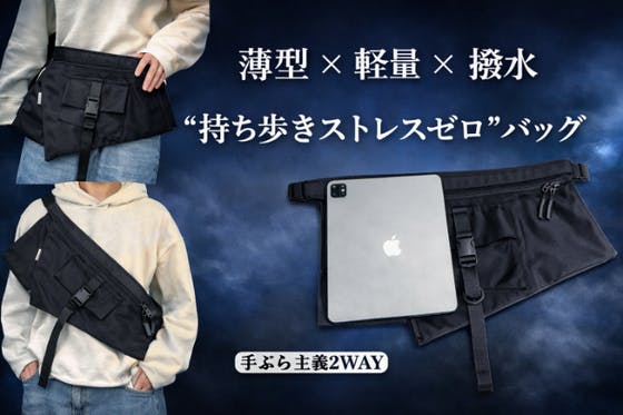 通勤・街歩き・旅行に最適な、薄型なのに大容量の2WAYバッグが登場。ウエスト・斜め掛けの2スタイルが可能で、スマホ・財布・文庫本・ガジェットまでスッキリ収納。軽...