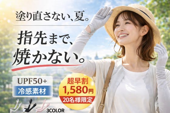 塗り直し不要。着けるだけで紫外線対策。 UPF50+・接触冷感素材を採用したアーム&手甲一体型カバー。 自転車通勤、公園、運転、買い物まで手元をしっかりカバー。...