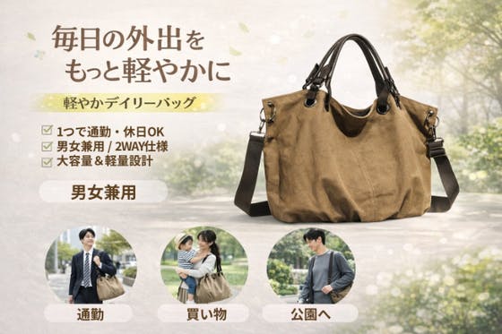 通勤も休日もこれ一つ。 ・手持ち・肩掛け・斜め掛けの3WAY仕様で男女問わず使いやすいデイリーバッグ。 収納力と軽さのバランスを考え、毎日の外出をスマートに整えます。