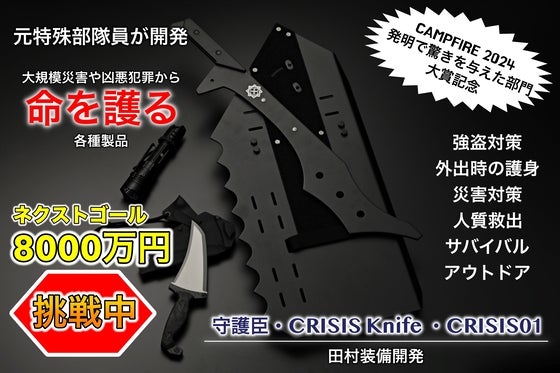 今までCAMPFIREで挑戦してきた3プロジェクト(護身具 守護臣、クライシスナイフ、クライシスライト)に、計3,540件もの「もう一度やってほしい」の声をいた...