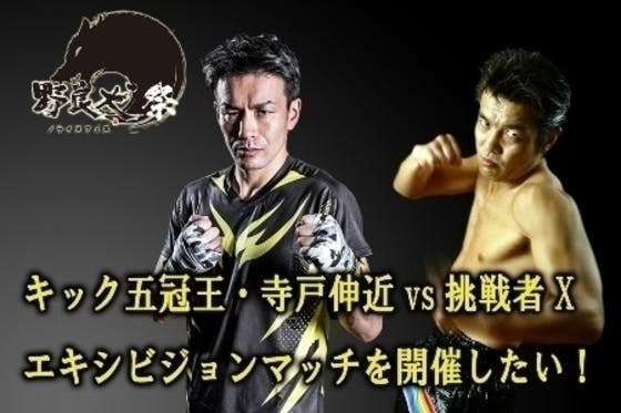 数々のタイトルを奪取してきた「”元キックボクシング五冠王”寺戸伸近vs挑戦者Xのエキシビジョンマッチ」を実現させたい。寺戸選手は小林さとし同様、キックボクシング...