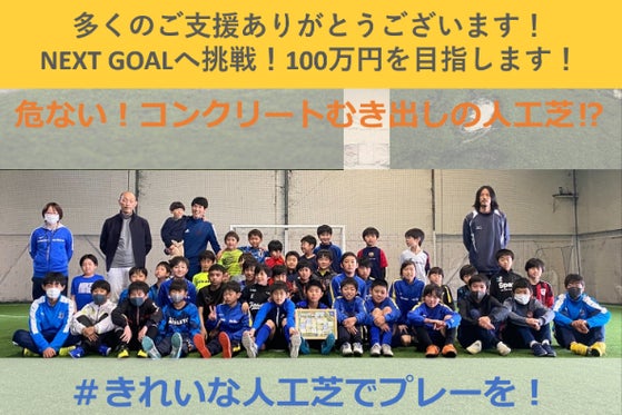 小学生サッカーチームがトレーニングに使用しているコートの人工芝が剥がれ、下地のコンクリートがむき出しになってきています。その中で日々安全に配慮しながらトレーニン...