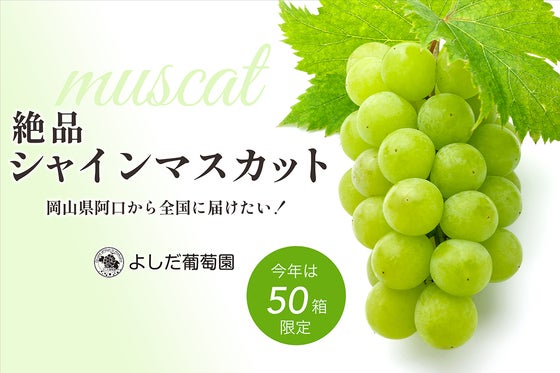 岡山県阿口にある『よしだ葡萄園』のクラウドファンディングがスタート!今回で3年連続3回目のトライになります!今年は、よしだ葡萄園の顔である、シャインマスカットを...