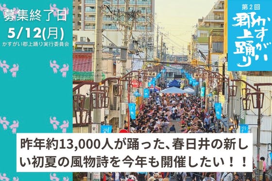 昨年約13,000人が踊った『第1回かすがい郡上踊り』今年も2025年5月17日(土)に開催し、愛知県春日井市の新しい初夏の風物詩にしたい!