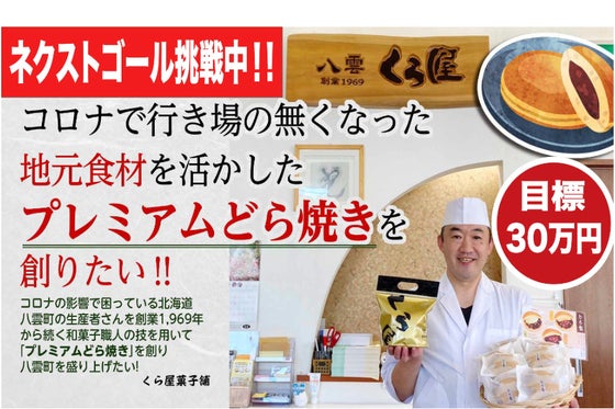 コロナの影響で困っている北海道八雲町の生産者さんを創業1969年から続く和菓子職人の技でプレミアムどら焼きを作って八雲町を盛り上げたい。父が作ったどら焼きを食べ...