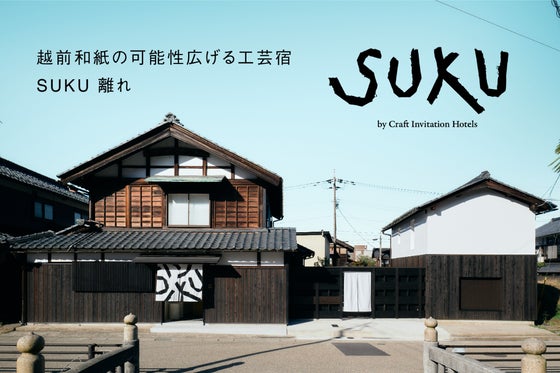 越前和紙を体感する工芸宿【SUKU】2棟目離れ。クリエイターとの協働で、長期滞在しながら素材の未来を共に創造する拠点。越前和紙の可能性を広げる。