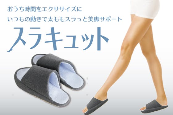 「おうち時間をエクササイズタイムに変えたい!」スラキュットはそんな想いで企画した太ももスッキリ・美脚サポートスリッパです。美脚の秘密は、太ももスッキリ・美脚の為...
