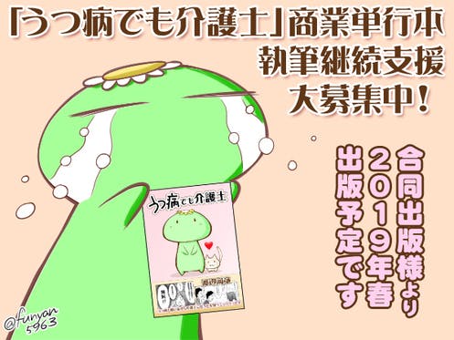 商業漫画単行本を制作するプロジェクトです。同人誌で発行していた「うつ病でも介護士」が合同出版様から単行本化するにあたり、こちらで執筆継続資金を募集いたします!現...