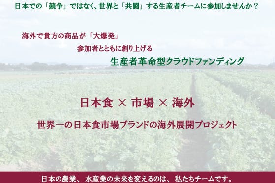 日本の生産者様が想いを込めて作った商品を、適正価格で販売するため海外マーケティングのプロが本気で産直店舗を運営。(調達金額により創業時の店舗規模を調整いたします...