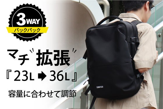 マチ拡張機能を採用した大容量『バックパック / リュック』! 荷物の容量に合わせてサイズ調節できるバッグは、出張から旅行、普段使いまで対応します。