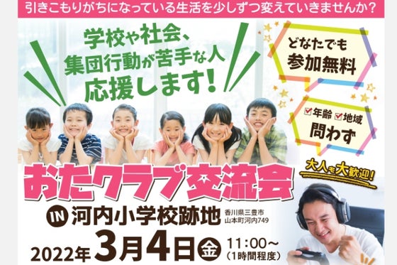 学校や社会、集団行動が苦手な人応援させてください香川県で「おたクラブ」を始めたいと思っています まずは、不登校や引きこもりの方のコミュニティを実施し、その方々...
