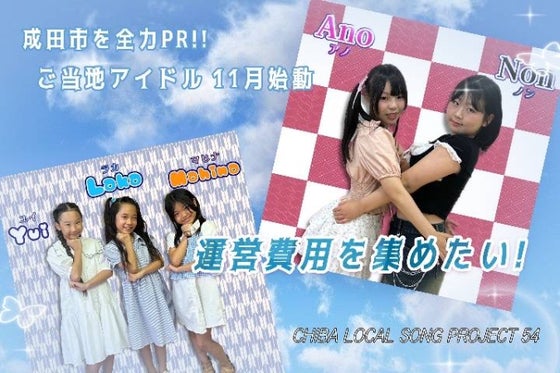 千葉県を音楽の力でPRする社会貢献型アイドル、千葉県54市町村を目標に取組んでいます。新たに成田が11月から始動、新たなな仲間も加わりその為の運営費用を集めたい。