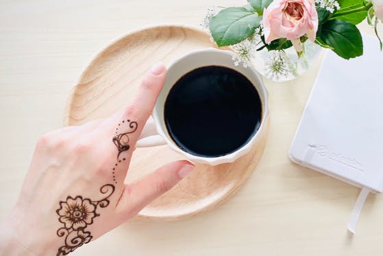 Henna(ヘナ)でからだに模様をえがく癒しのアート〜メヘンディ☆肌がオレンジ〜茶褐色に染まり、1〜2週間ほどで消えていきます☆美しいメヘンディを眺めて、じぶん...