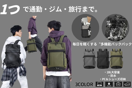 ビジネス・日常・短期旅行まで“1つで完結”。 17インチPC収納、防水素材、独立シューズルーム、キャリーオン対応。 「毎日の持ち物が多い」「通勤とジムを1つにま...