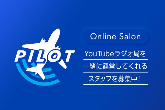 YouTubeラジオ局「PILOT」の運営をするサロンです。一緒に運営するスタッフを募集します。