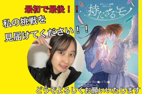 19歳の女の子が、今後の人生をかけて演劇公演を初プロデュース!しかしこのままだと約100万の借金を背負います。初めて脚本を書き、出演もする今しか出来ない挑戦を、...