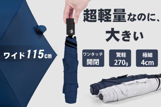 ①【ワイドに進化】ワンタッチで自動開閉。115cmの大きめサイズ&270gの超軽量を実現。 ②【スムーズな収納】余計な力を入れなくてもシャフトを簡単に閉じられ...