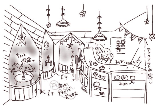 1席ごとにキッズスペースのある、子ども連れの方が安心して楽しめるカフェを作りたい。ガラスや危険なものを除くのはもちろん、子育て支援としてキッズメニューを子どもた...