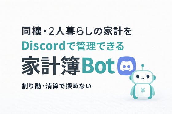同棲・2人暮らしの家計管理を、Discord上で簡単に行える家計簿Botを開発しています。 支払い登録や月ごとの割り勘計算、固定費管理などを、普段使っているD...