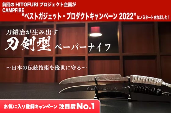 例えば、1400年の伝統技術と真剣の素材「玉鋼」から 生まれた本物感たぎる「刀剣型ペーパーナイフ」! このプロジェクトは、伝統技術を受け継ぐ職人の方々と手を組み...