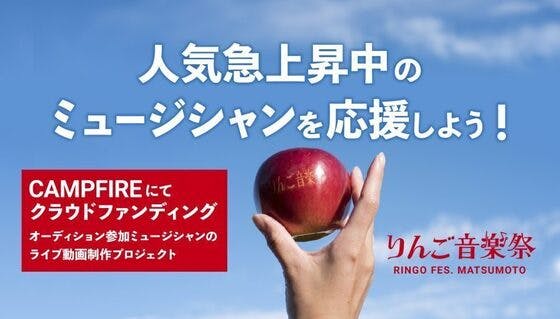 オーディション選出アーティストの「りんご音楽祭2023」当日のライブムービーを作成するクラウドファンディングがスタートします。 「りんご音楽祭」はこれまで、人気...