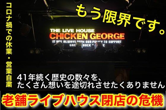 神戸三宮で今年で41周年を迎える、『THE LIVE HOUSE CHICKEN GEORGE』存続をかけての、クラウドファンディングを立ち上げさせていただくこ...