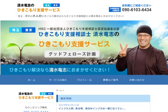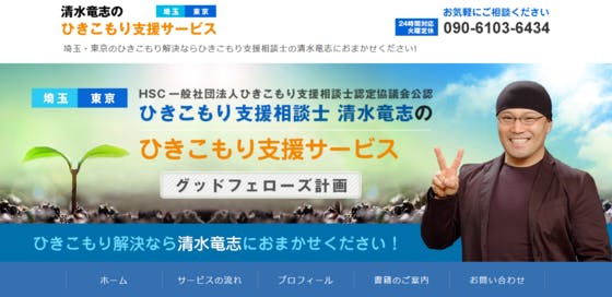 埼玉・東京で若者のひきこもりの支援を行います。自宅へ訪問しカウンセリングを行い、その後何度か訪問を繰り返し、親密な人間関係を作ります。その後、清水と一緒にスポッ...