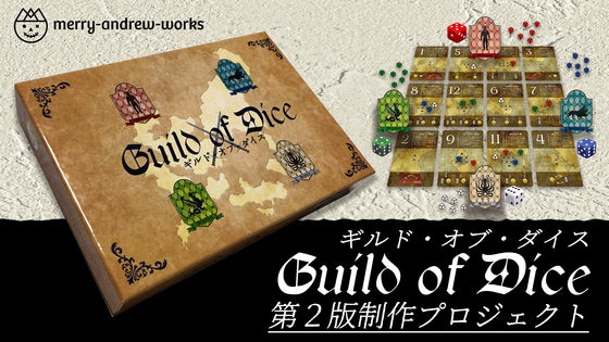 ゲームマーケット2019春の二日間で完売となった初版「ギルド・オブ・ダイス」。ご好評の声を頂き、第2版を刷るためのプロジェクトを立ち上げました。