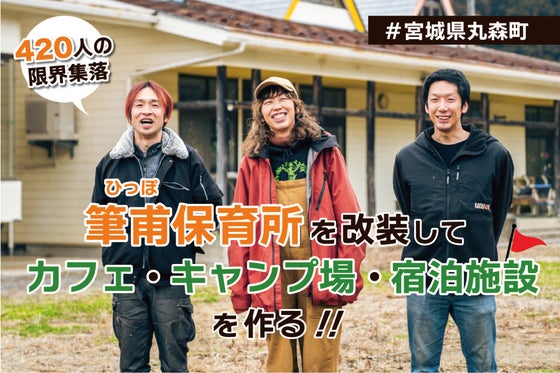 過疎化・人口減少が著しい宮城県丸森町筆甫(ひっぽ)地区にある2019年に廃校となった旧筆甫保育所を改装し、カフェ・キャンプ場・宿泊ができる複合施設を作ります。筆...