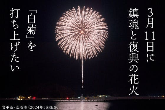 わたしたちは2025年3月11日に東日本大震災津波の犠牲者、能登半島地震・豪雨で亡くなった方たちを弔うために岩手県釜石市で鎮魂と復興の花火「白菊」の打ち上げを実...