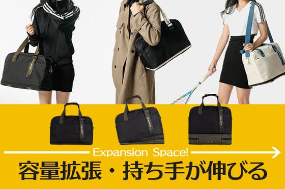 自由自在の拡張性!22Lから31Lに容量拡張&持ち手の長さ調節も可能でショルダーバッグとしても使用可能。カラーは8色と豊富で、キャリーバッグにも結合できます。旅...