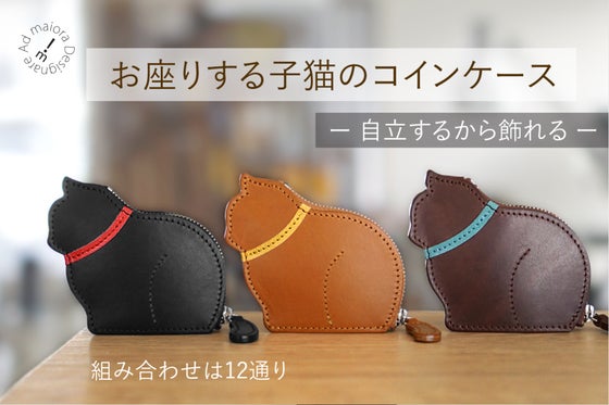 手のひらサイズだけど大容量の「子猫のコインケース」マチが大きく開くので取り出しやすい! お座りさせてインテリアにも。
