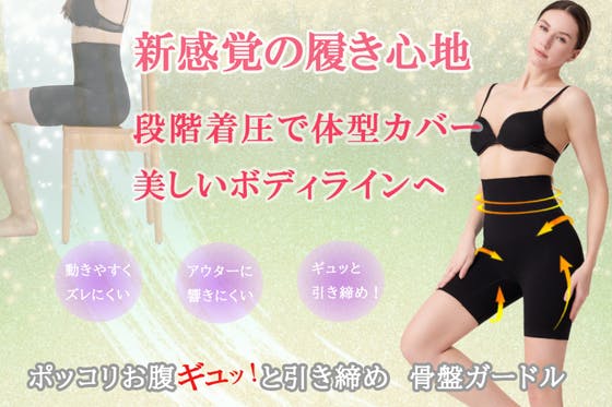 加圧構造でお腹周りしっかり包み込み、ポッコリお腹を押さえてシェイプアップ(※着用時の効果)。腰の前後にはそれぞれ2本ずつの形状記憶ワイヤを組み込み、正しい姿勢を...
