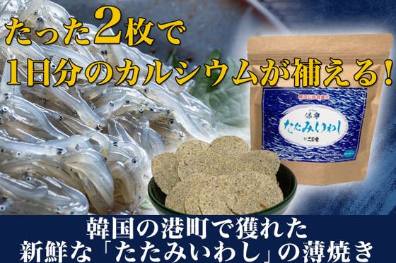 ★韓国屈指の港町「保寧(ポリョン)」の清浄水域で獲れる新鮮なカタクチイワシ(しらす)を使用! ★たたみいわし1枚当たり38㎎のカルシウム量!60代以上女性は1日...