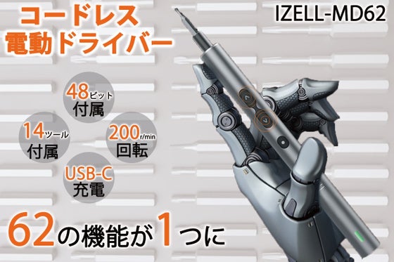 ・本体重量わずか54g!長さ18㎝のコンパクトデザイン!・長いネジ穴に対応ロングビット付属!・どこでも持ち運べる便利なDIYツール「IZELL-MD62」