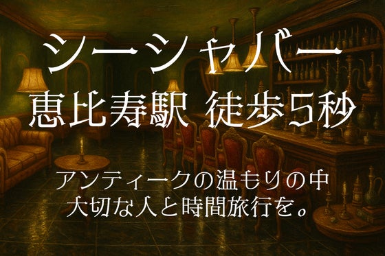 恵比寿駅4番出口徒歩5秒、アンティークの温もりあるシーシャバー・chmel(シュメル)『古城で紡ぐ、時の旅。』をテーマに、シーシャを嗜みながらアンティークの温も...