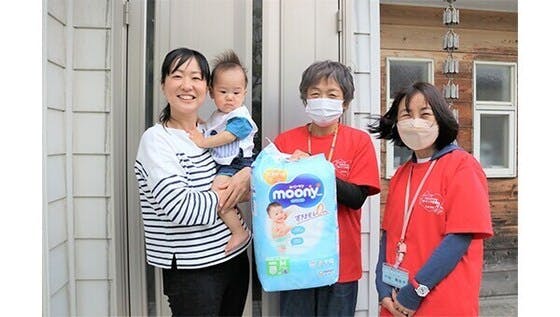 毎月、訪問支援員が子育て家庭におむつやミルクなどの育児用品を届ける「はぐくみ定期便」訪問支援員が自宅へ直接訪問し、育児用品を届けます。育児用品を届けるだけでなく...