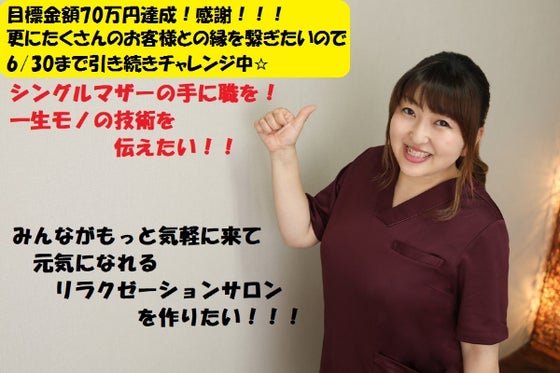 地元の皆さんにガチガチになった身体から解放され、毎日を満喫してほしい!その為にリラクゼーションサロン「てもみ屋 縁」をオープンさせたい! 「対面&オンライン整...