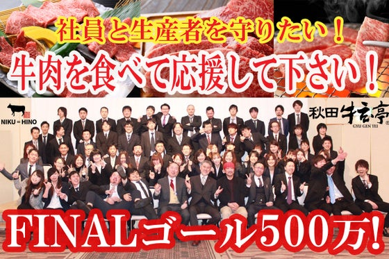 新型コロナウイルス感染拡大の影響を受け店舗休業、収入源の8割以上を絶たれました。休業に追い込まれるなかでなんとか社員の雇用を守り、和牛生産者の方々を守りたいです...