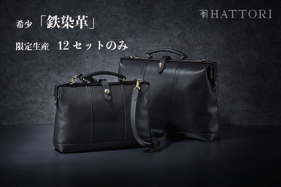 タンニンと鉄が反応して黒くなることを利用して、革を染める製法「鉄染め」で、深い黒の色合いを出した鉄染め革のダレスバッグ。まだ大量生産や安定供給が難しいため、今回...