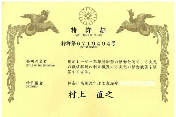 人間が視覚で距離を測って運転する方法を、距離計測したコンピューターに3次元空間の演算をさせて運転する方法の、「特許第6719494号 追尾レーダー距離計測器の駆...