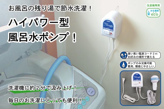 お風呂の残り湯約40Lを約2分で洗濯機に汲み上げるハイパワー型の風呂水ポンプにて、 残り湯を無駄にすること無く再利用出来て、毎日のお洗濯にとても便利な...
