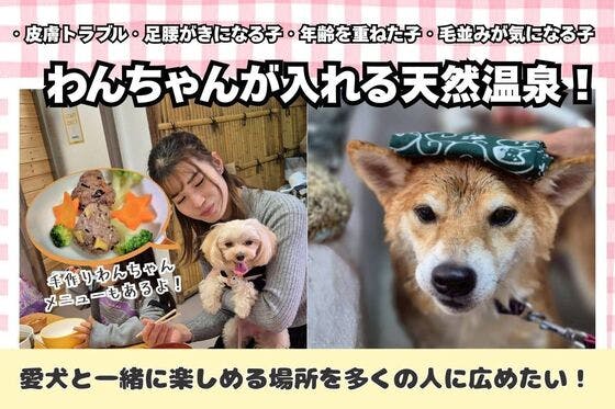 岡山県鏡野町にある「瀬戸川ペット温泉」です。温泉・食事・ドッグランが一つに揃い、どんなワンちゃんでも安心して過ごせる「かけがえのない場所」を広める挑戦です!あと...