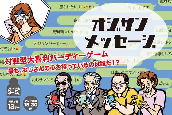「おはよう~チュッ!」「ナンチャッテ★」など今話題の「おじさん構文」を自由に組み合わせて、あなただけの『オジサンメッセージ』を作れちゃうボードゲームです!誰より...