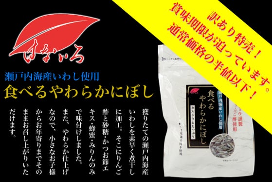 獲りたての瀬戸内海産いわしを素早く煮干しに加工。そこにりんご酢と砂糖・かつお節エキス・蜂蜜・みりんのみで味付けしました。また、柔らか仕上げなので、小さなお子様か...