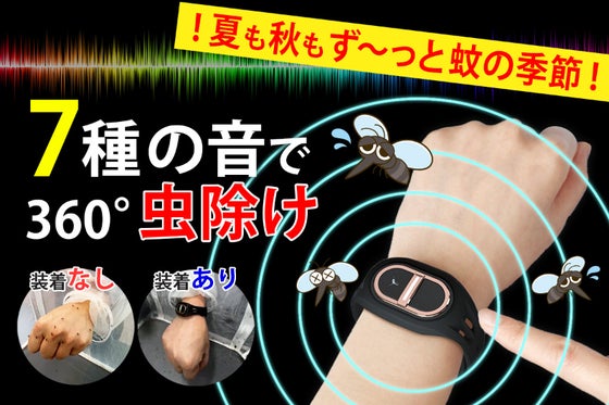 ① 薬剤不使用 ② 臭いなし ③ 環境に優しい ④ 高齢者や子供、妊婦、ペットにも安心 ⑤ 音波で蚊の感覚を効果的に妨げ ⑥ 全方位に虫よけ効果を発揮